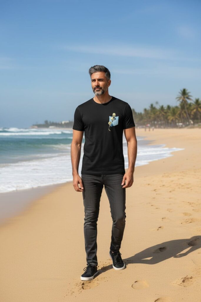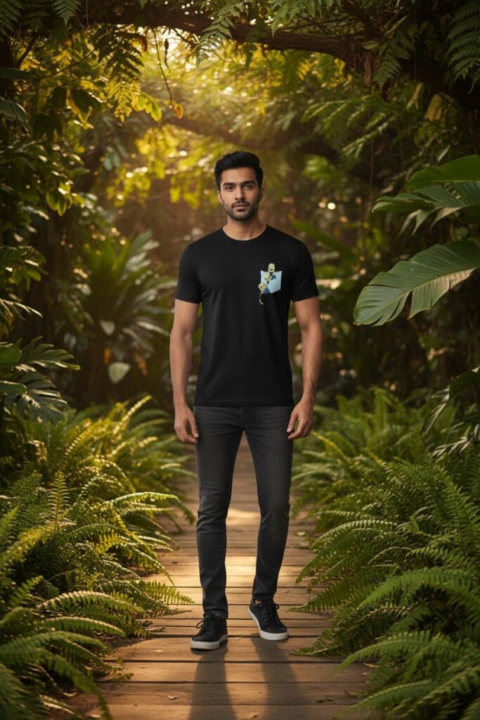Men’s Black Pocket Graphic Printed T-Shirt