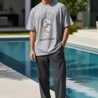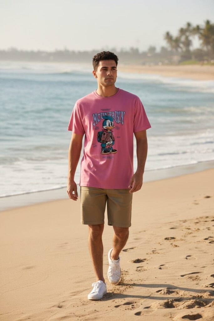 Men’s Pink Cartoon Graphic Printed T-Shirt