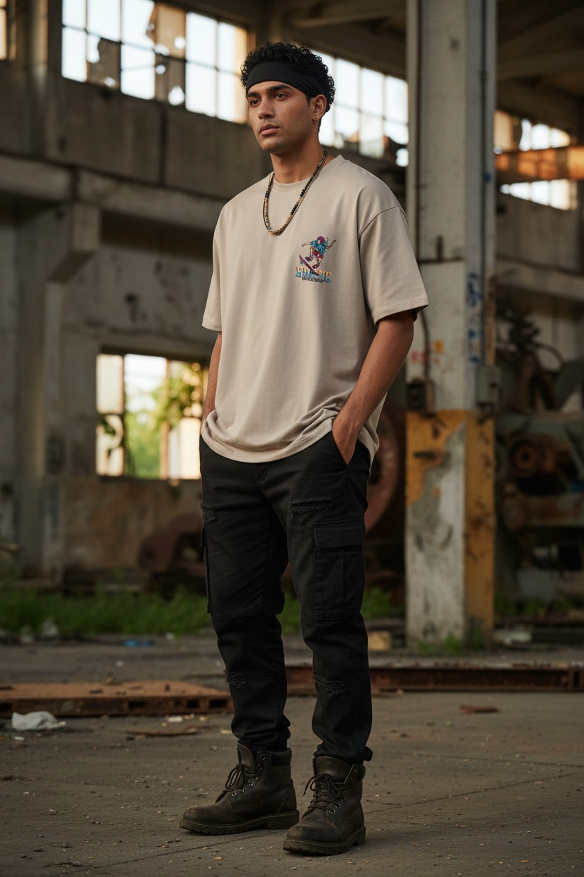 Men’s Oversized New York Skateboarding Graphic T-Shirt – Streetwear Back Print Tee (Beige)